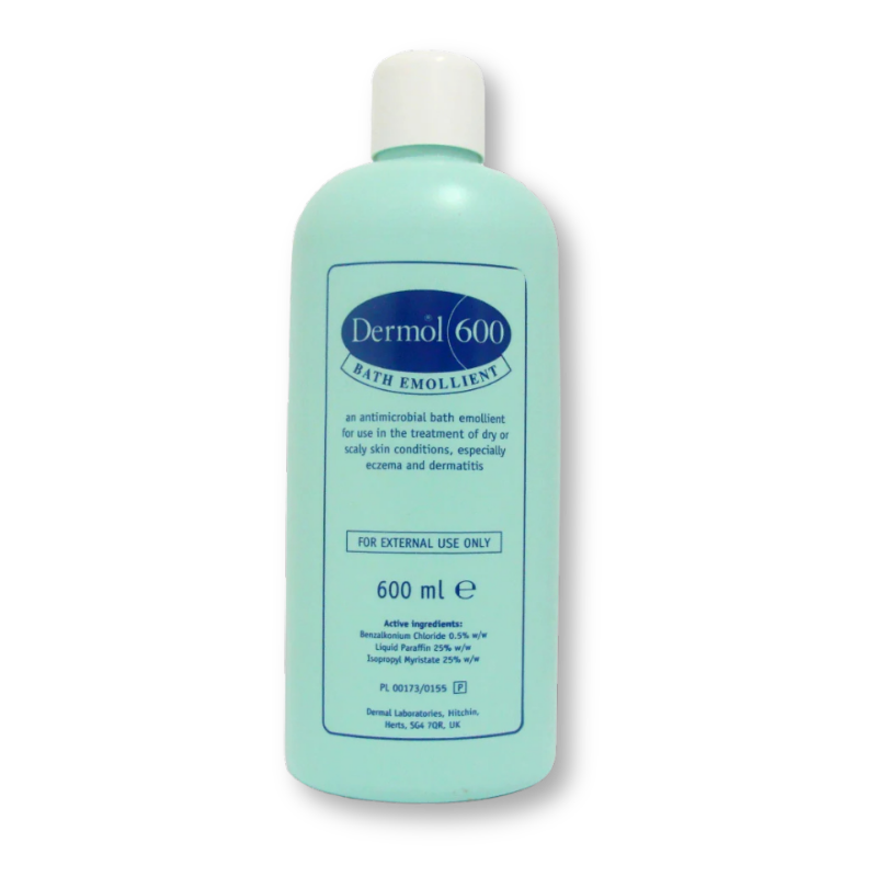 Dermol 600 Bath Emollient is an antimicrobial and moisturizing treatment designed to be added to bath water, suitable for all ages, including babies. It helps treat and prevent dry, itchy skin conditions such as eczema and dermatitis by softening and protecting the skin, trapping moisture, and restoring the skin’s natural barrier. It also combats bacteria that can worsen eczema and reduces the risk of infection from scratching. Additionally, it prevents skin drying and irritation caused by regular soaps, foaming agents, and fragrances, and can be safely used alongside other prescribed or recommended emollients and treatments.